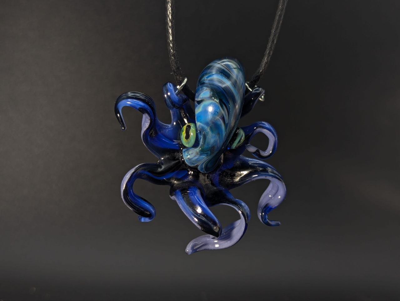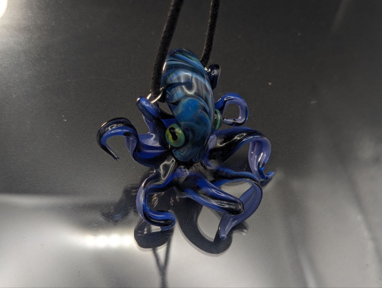 A multi-colored octopus pendant featuring a mix of blues with a purple underbelly.